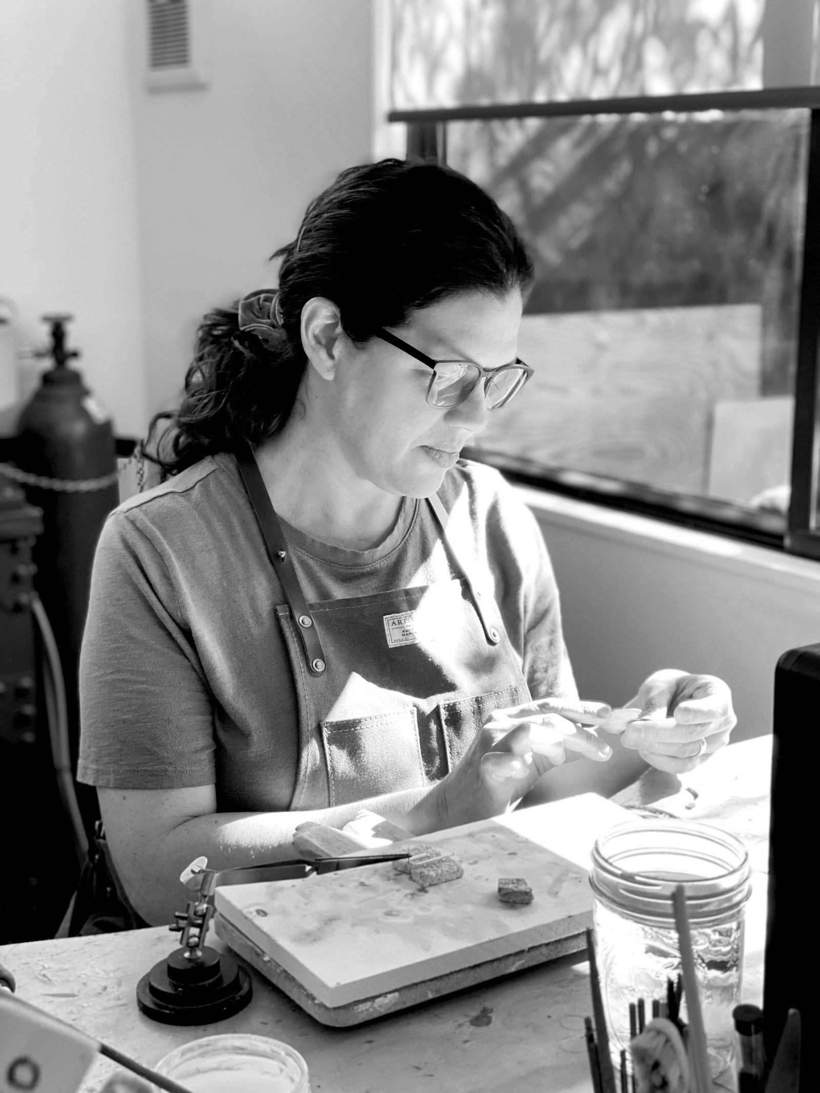 Elina Peduzzi is a contemporary jewelry artist and sculptor whose work bridges ancient adornment with a modern voice. Inspired by history, craft, and world cultures, her pieces reflect a sculptural approach that honors timeless traditions while forging connections between past and present. Elina’s passion for jewelry-making spans over twenty years, beginning as a side pursuit before becoming her full-time focus. Her background in international relations deeply informs her artistic practice, shaping her understanding of symbolic motifs and shared design elements across civilizations.
